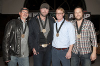 Pictured at the “Hard to Love” No. 1 party are co-writer Billy Montana, Lee Brice, and co-writers John Ozier and Ben Glover. View Photo