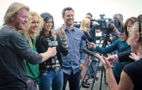 Little Big Town fields interviewers’ questions at the “Pontoon” No. 1 party. View Photo