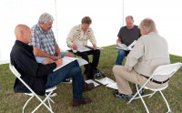 The World Famous Headliners prepare for their set on Sunday, June 10 at the BMI Tailgate Party during the 2012 CMA Music Festival. View Photo