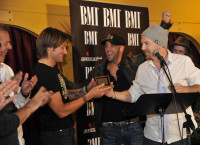 During an intimate rooftop reception on April 30, BMI celebrated the songwriters behind George Strait’s latest No. 1 hit “Love’s Gonna Make it Alright.” Co-written by Al Anderson and Chris Stapleton, the song is Strait’s fifty-ninth trip to the top of the charts. Pictured are MCA Nashville’s Van Haze, producer Tony Brown, MCA Nashville’s Joe Putnam, Erv Woolsey Management’s Dottie… View Photo