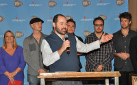 Republic Nashville president Jimmy Harnen took his “work like apes” motto all the way, inviting an alleged primate to hand out the wares for the label’s first No. 1 hit, “Crazy Girl.” View Photo