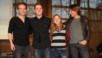 The Eli Young Band, celebrating their first No. 1 song, is interviewed by CMT reporter Terry Bumgardner. View Photo
