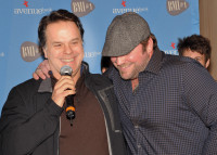 Former Curb Records a&r exec and award-winning BMI songwriter Doug Johnson congratulates his protégé Lee Brice on another chart-topping song at the “Crazy Girl” No. 1 party. View Photo