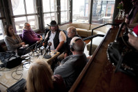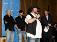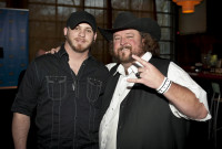 Co-writers Colt Ford and Mike Dekle field reporters’ questions at the “Country Must Be Country Wide” No. 1 party. View Photo