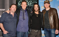 Dylan Altman, Terry Sawchuk, Jake Owen, and Eric Paslay celebrate at the “Barefoot Blue Jean Night” No. 1 party in Nashville. View Photo