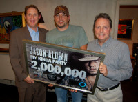 Jason Aldean stopped by BMI’s Nashville office Tuesday, October 11 to hand-deliver a plaque thanking BMI for its support of his latest album, My Kinda Party, which is now certified double-platinum and is the top-selling country album of the year. Aldean will vie for five CMA nominations this year, including Entertainer of the Year and Male Vocalist of the Year.… View Photo