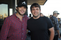 Singer/songwriter Thomas Rhett celebrates with dad Rhett Akins at the no. 1 party celebrating the older Akins’ latest chart-topper, “Take a Back Road.” View Photo