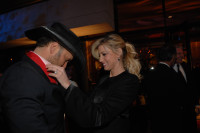Faith Hill (right) drapes her husband Tim McGraw's (left) very first BMI Country Award medallion around his neck. View Photo