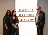 (L-R) BMI’s Tracy McKnight and Beatriz Aguilar gather for a photo with Mark Isham before the “Maintaining Parallel Careers in Music with Mark Isham” panel during the 2023 Nashville Film Festival at Arc Studios on Friday, September 29. View Photo