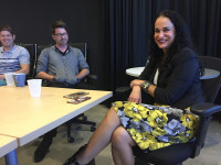 ABC’s Senior Vice President, Music, Dawn Soler, engages with the group of composer fellows. View Photo