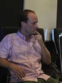 Sundance Institute Film Music Program Senior Manager Jarom Rowland looks on in interest during the discussion. View Photo