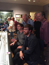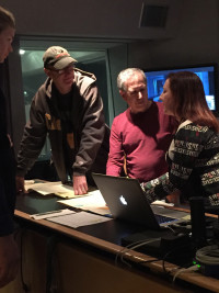 Pictured (L-R) in the recording studio at the Sundance Music and Sound Design Labs at Skywalker Sound in California are: creative advisors George S. Clinton, Todd Boekelheide and Sundance Film Music program director and BMI composer Peter Golub. (Front row): documentary composer lab fellow Ryan Rumery and director Marcus Lindeen. View Photo