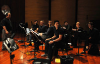 Pictured (L-R) at the BMI conducting workshop are (back row): BMI’s Olivia Garcia, BMI composer Mike Simon, BMI’s Ray Yee, BMI composers Forrest Gray and Gabriel Hays, BMI’s Philip Shrut and BMI composers Duncan Thum and Zack Ryan. (front row): Music editor Chris Ledesma, BMI composers Becky Kneubuhl and Alexis Grapsas, BMI composer and conductor Lucas Richman, music contractor David… View Photo