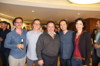 Pictured (L-R) at the 20th anniversary reception are: BMI composers Rob Cairns and Joey Newman, BMI’s Evelyn Rascon and BMI composers Tony Morales and Mark Robison. View Photo