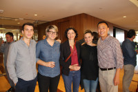 Pictured (L-R) at the 20th anniversary reception are: BMI composers and 2017 conducting workshop participants Becky Kneubuhl, Forrest Gray and Allyson Newman with BMI composer Barbara Cohen and BMI’s Ray Yee. View Photo