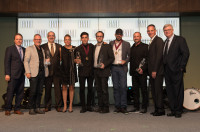BMI’s Jody Williams, Capitol CMG’s Jimi Williams and Casey McGinty, BMI’s Leslie Roberts, BMI Songwriter Phil Wickham, Seems Like Music’s Mark Nicholas, BMI Songwriter of the Year Chris Stevens, Sing My Songs’ Peter Kipley and BMI’s Mike O’Neill and Phil Graham pose together at the Christian Awards. Capitol CMG won Publisher of the Year, Chris Stevens won Songwriter of the… View Photo