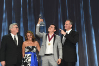 Pictured at the 22nd annual BMI Latin awards at the Fontainbleau hotel in Miami Beach, Florida (l-r) are: BMI Senior Vice President, Writer/Publisher Relations Phil Graham, BMI Vice President BMI Vice President, Latin Music Delia Orjuela, BMI Latin Songwriter of the year Horacio Palencia & President and CEO, Mike O’Neill. View Photo