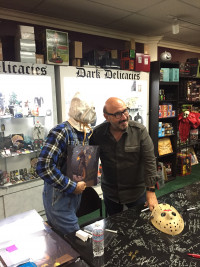 Composer Harry Manfredini poses with a very enthusiastic fan dressed up as the main character “Jason” from Friday the 13th. View Photo