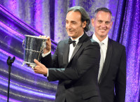 Honoree Alexandre Desplat (L) accepts the BMI Icon Award from BMI President and CEO Mike O’Neil during the 2015 BMI Film & Television Awards at the Beverly Wilshire Hotel on May 13, 2015 in Beverly Hills, California. View Photo