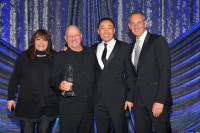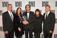 (L-R) BMI President and CEO Mike O’Neill, Laura Engel, honoree Alexandre Desplat, BMI Vice President of Film and Television Relations Doreen Ringer-Ross and Assistant Vice President, Film/TV Relations at BMI Ray Yee pose with the BMI Icon Award during the 2015 BMI Film & Television Awards at the Beverly Wilshire Hotel on May 13, 2015 in Beverly Hills, California. View Photo