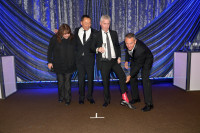 (L-R) BMI Vice President of Film and Television Relations Doreen Ringer-Ross, composer Mike Post, Assistant Vice President of Film and Television Relations at BMI Ray Yee and BMI President and CEO Mike O’Neill pose with the BMI Film Music Award for “Law & Order: SVU” onstage during the 2015 BMI Film & Television Awards at the Beverly Wilshire Hotel on… View Photo