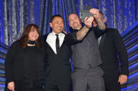 (L-R) BMI Vice President of Film and Television Relations Doreen Ringer-Ross, Assistant Vice President of Film and Television Relations at BMI Ray Yee, composer Matt Koskenmaki and BMI President and CEO Mike O’Neill pose onstage during the 2015 BMI Film & Television Awards at the Beverly Wilshire Hotel on May 13, 2015 in Beverly Hills, California. View Photo