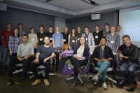 Fellows and advisors of the three-day Workshop for Music in Advertising gather in between sessions. View Photo