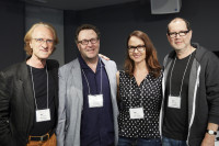 Pictured L-R at the 2014 BMI/NYU Workshop for Music in Advertising are: Mark Suozzo, Ron Sadoff, BMI Senior Director of Film/TV Relations Lisa Feldman and Andy Bloch. View Photo