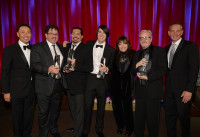 (L-R) BMI Assistant Vice President, Film/TV Relations Ray Yee; BMI Film/TV Award winners John Enroth, Albert Fox and J.G. Quintel; BMI Vice President, Film/TV Relations Doreen Ringer-Ross; BMI Film/TV Award winner Mark Mothersbaugh; and BMI CEO Michael O'Neill attend the 2014 BMI Film/TV Awards at the Beverly Wilshire Four Seasons Hotel on May 14, 2014 in Beverly Hills, California. View Photo