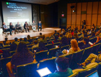 Attendees soak up the points raised by the “Sewing the Story Together with Score” panel. View Photo