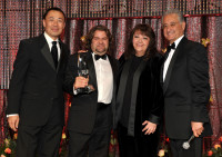 Executive Director of Film/TV Ray Yee, composer Xavier Asali de la Mora, BMI Vice President of Film/TV Relations Doreen Ringer Ross and BMI President and CEO Del Bryant pose onstage during the 2010 BMI Film/TV Awards held at the Beverly Wilshire Hotel on May 19, 2010 in Beverly Hills, California. View Photo