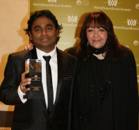 Best Original Song Written for a Film winner A. R. Rahman and BMI’s Doreen Ringer Ross show off Rahman’s trophy at the 2009 World Soundtrack Awards in Ghent. View Photo