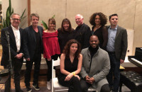 Pictured at the K17/Sundance Institute Film Music Program concert are: BMI composers Peter Golub and Harry Gregson Williams, Tracy McKnight, BMI’s Doreen Ringer-Ross, and BMI composers George S. Clinton, Kathryn Bostic, and Bijan Olia. Seated are BMI composers: Anna Drubich and Jongnic Bontemps. View Photo