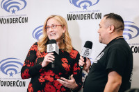 BMI composer and panelist Ronit Kirchman, being interviewed before BMI’s panel “Spine-Tingling Suspense: Music from Thrillers and Drama” at WonderCon on March 29, 2019 in Anaheim, CA. View Photo