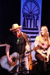 BMI songwriters Bonnie Bishop and Adam Hood pose for a celebratory picture after their Eddie’s Attic Songwriter Showcase. View Photo