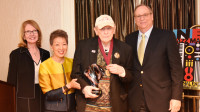 2015 NEA Jazz Master Joe Segal is surrounded by NEA’s Music & Opera Director Ann Meier Baker, NEA’s Chair Jane Chu, and BMI’s Vice President,Writer/Publisher & Industry Relations Charlie Feldman at the BMI/NEA Jazz Masters annual luncheon. View Photo