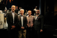 Assistant Musical Director Alan Ferber, BMI’s Senior Director, Jazz & Musical Theatre Patrick Cook, 2024 Charlie Parker Jazz Composition Prize Winner Takumi Kakimoto, and Musical Director Andy Farber at the 35th Annual BMI Jazz Composers Workshop Summer Showcase on June 5, 2024 at The Marjorie S. Deane Little Theater in New York City. View Photo