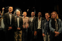 Lost Shoe Brewing & Roasting Company co-owner & Mass Brewers Guild President JP Gallagher, Mass Brewers Guild Executive Director Katie Stinchon, BMI jazz composer Duke Robillard, BMI jazz composer Gerry Beaudoin, BMI’s Dan Spears. View Photo
