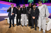 (L-R) Alexis Fierro “Chachito,” Albert Hype, Caleb Calloway, Álvaro Díaz, BMI’s Jesus Gonzalez and Armenta during BMI’s “How I Wrote That Song” panel at Billboard Latin Music Week at The Fillmore in Miami Beach on Tuesday, October 15, 2024. View Photo
