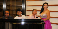 BMI’s Delia Orjuela, songwriter Elsten Torres, BMI’s Nada Latto, and songwriter Gustavo Galindo pose before the two artists perform at “Making Music Happen.” View Photo
