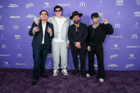 (L-R) Alexis Fierro “Chachito,” Armenta, BMI’s Jesus Gonzalez, and Albert Hype gather for a photo before BMI’s “How I Wrote That Song” panel during Billboard Latin Music Week at The Fillmore in Miami Beach on Tuesday, October 15, 2024. View Photo