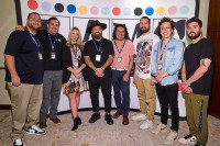 (L-R) Emilio Morales, Oscar Martinez, Sol Naiman, BMI’s Jesus Gonzalez, Jose Luis “Cheo” Pardo, Diego Maldonado, Pablo Ahogado, and Trooko gather for a photo after their panel, “The Business of Songwriting,” during LAMC 2024 on Wednesday, July 10, in New York City. View Photo