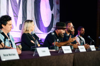BMI’s Jesus Gonzalez (middle) moderating “The Business of Songwriting” panel during LAMC 2024 on Wednesday, July 10, in New York City. View Photo