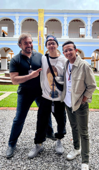 (L-R) Francisco Páez, Kontra Marín, and BMI’s RC Carranza gather for a photo during the 2024 Centroamérica Mercado Musical at Centro de Formación de la Cooperación Española en La Antigua Guatemala, on June 17, 2024. View Photo
