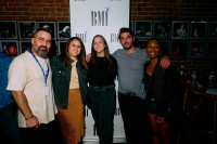 (L-R) BMI’s Jesus Gonzalez, Lilibeth Patron, Gabriella Natali, Tim Pattison and Amani Hite pose for a photo during LAMC’s Indie Showcase at Drom in New York on Thursday, July 13, 2023. View Photo