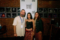 (L-R) BMI’s Jesus Gonzalez, Loyal Lobos, and Lilibeth Patron pause for a photo during LAMC’s Indie Showcase at Drom in New York on Thursday, July 13, 2023. View Photo