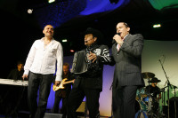 Jorge Hernandez of Tigres del Norte and Mariano Barba during their musical tribute View Photo