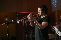 Latin GRAMMY nominee Linda Briceño plays the trumpet at BMI’s Una Noche Bohemia. View Photo
