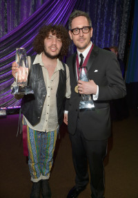 Producers Benny Blanco (L) and Noel Zancanella pose with the award for Songwriter of the Year at the 63rd Annual BMI Pop Awards held at the Beverly Wilshire Hotel on May 12, 2015 in Beverly Hills, California. View Photo