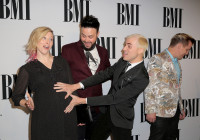 (L-R) Recording artist Elaine Bradley, Brandon Campbell, Tyler Glenn and Christopher Allen of Neon Trees attend the 63rd Annual BMI Pop Awards held at the Beverly Wilshire Hotel on May 12, 2015 in Beverly Hills, California. View Photo